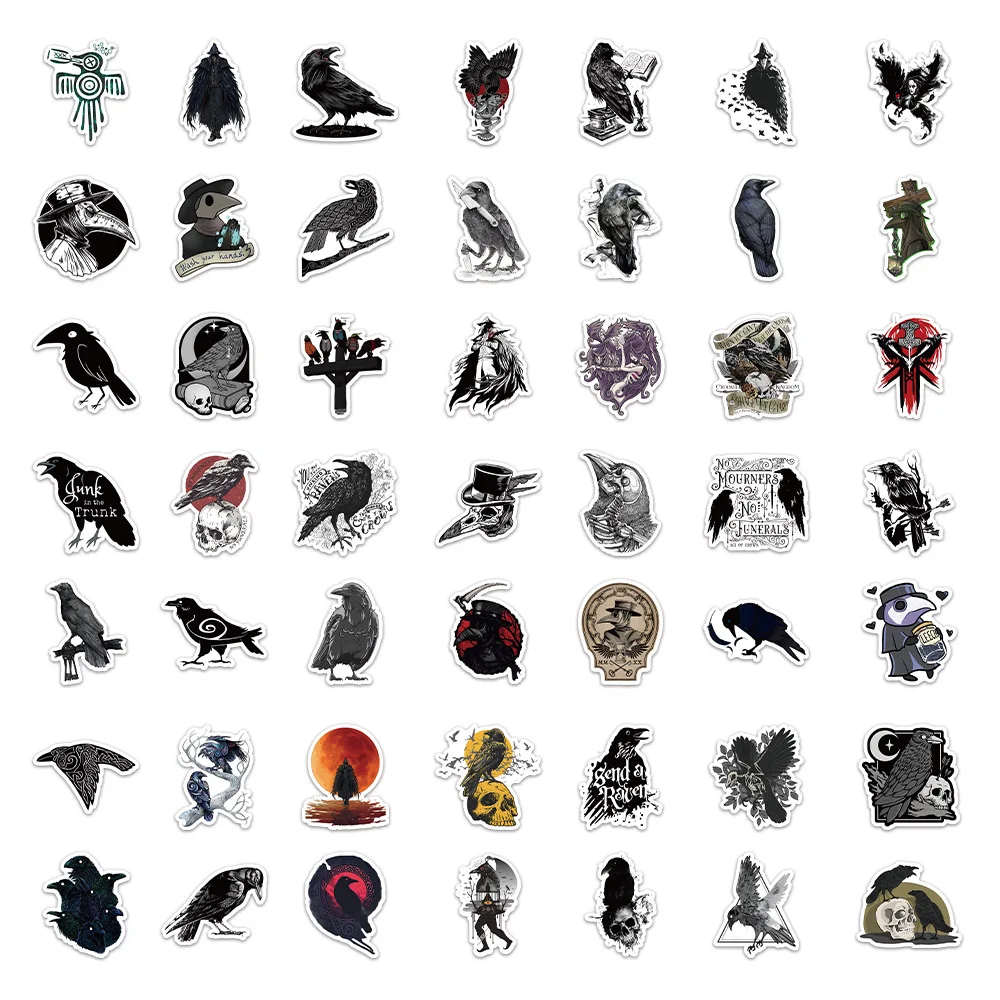 50Pcs Dark Crow Doodle Sticker Phone Laptop Luggage Skateboard Stationery DIY Graffiti Decals Cartoon Fun Stickers for Kid Gift